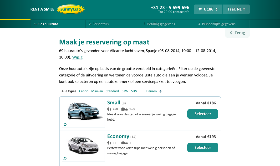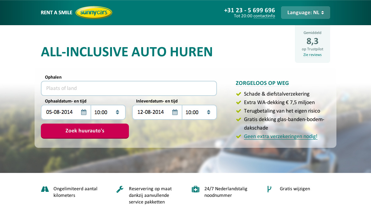 Sunny Cars Product Style tile Website Newsletters Skills Concept Webdesign Front end development URL nieuw.sunnycars.nl back Booking street